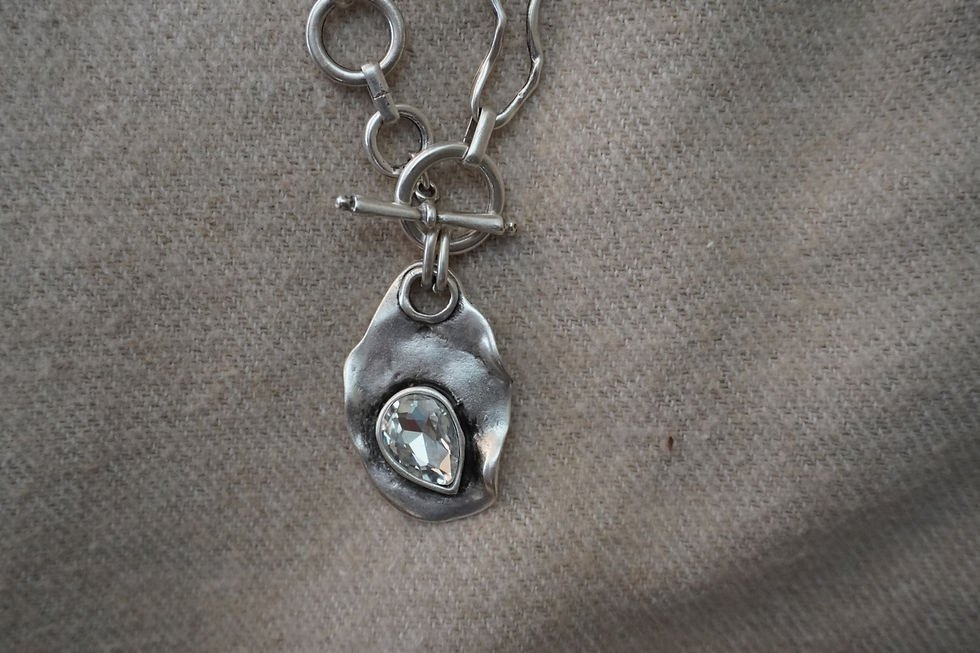 Elegant Pewter Necklace with Clear or Smokey Gray Crystals
